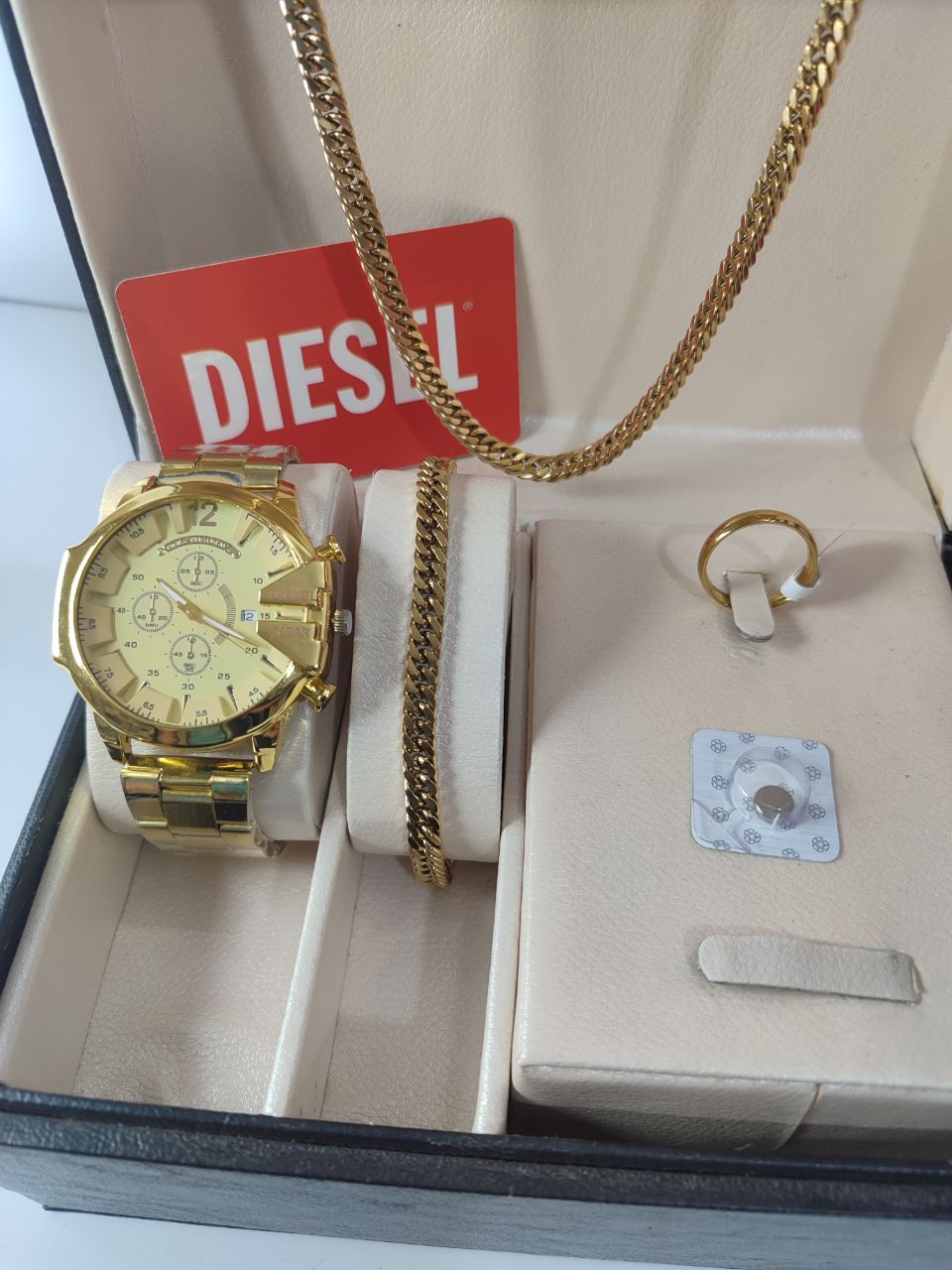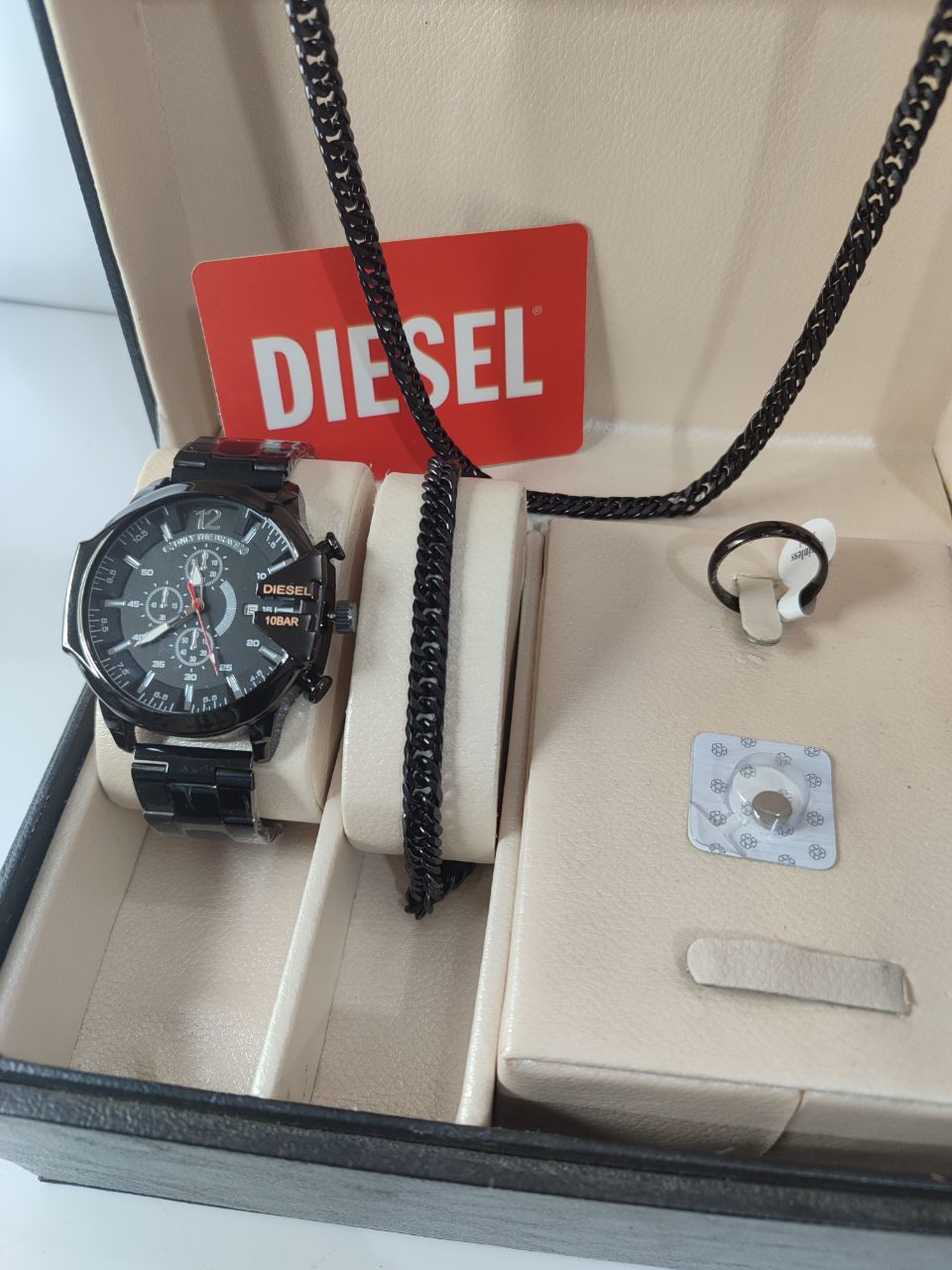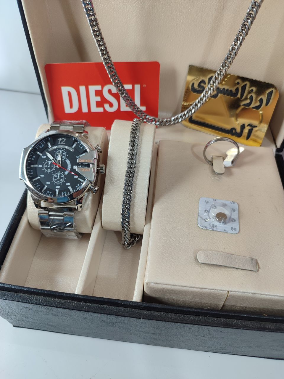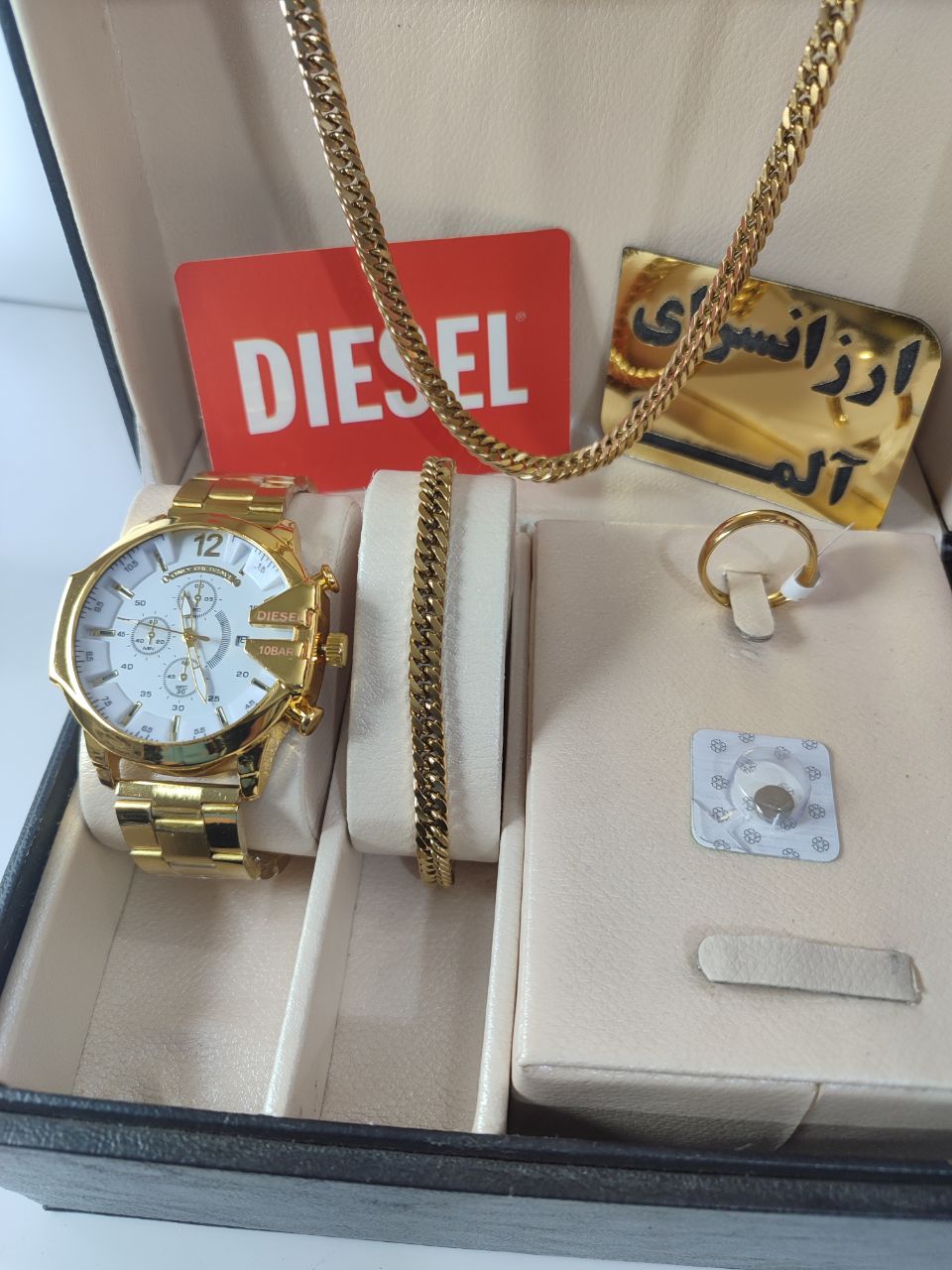 ست ساعت دیزل شاخدار مردانه صفحه بزرگ باکیفیت گردنبند دستبند حلقه ارسال رایگان