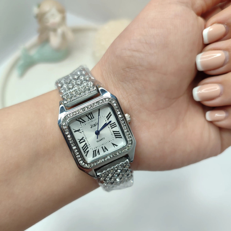 ساعت زنانه نگین دار طلایی نقره ای مجلسی جعبه دارد ارسال رایگان بسیار زیبا هدیه ای در شأن