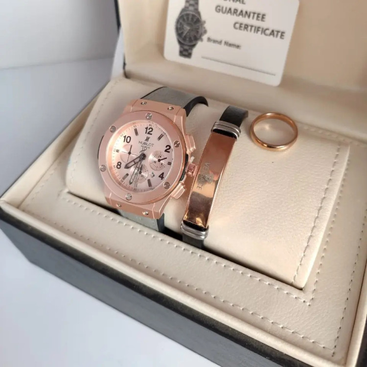 ساعت ست اسپرت هابلوت مردانه دستبند و حلقه ست دارد های کپی تقویم دار جعبه ارسال رایگان روز مرد کادو