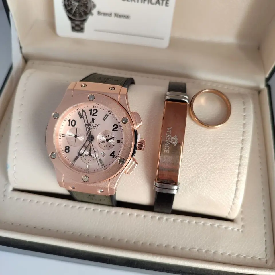 ساعت ست اسپرت هابلوت مردانه دستبند و حلقه ست دارد های کپی تقویم دار جعبه ارسال رایگان روز مرد کادو