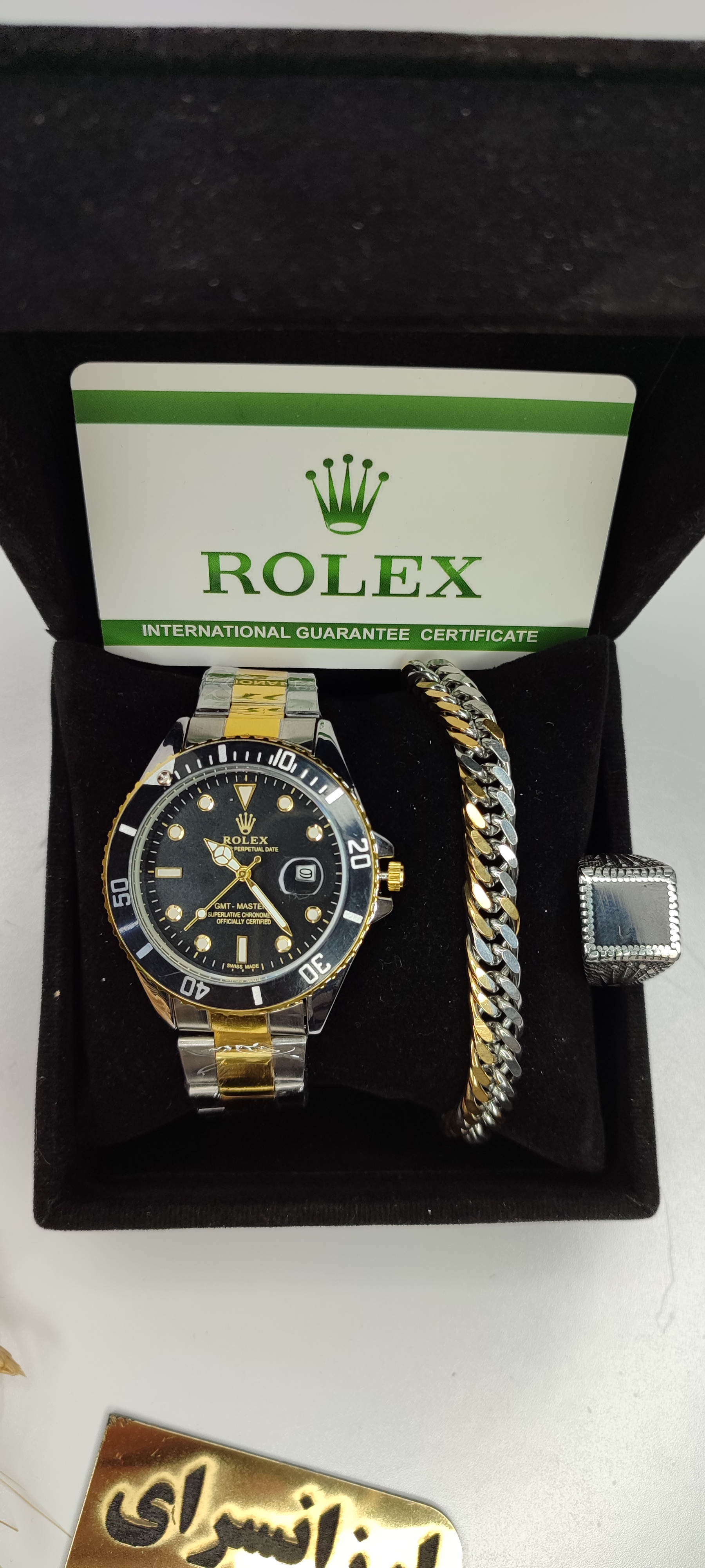 ساعت برند رولکس مردانه گارانتی دارد باتری یدکی جعبه مخمل دارد دستبند استیل انگشتر رنگ ثابت ارسال رایگان