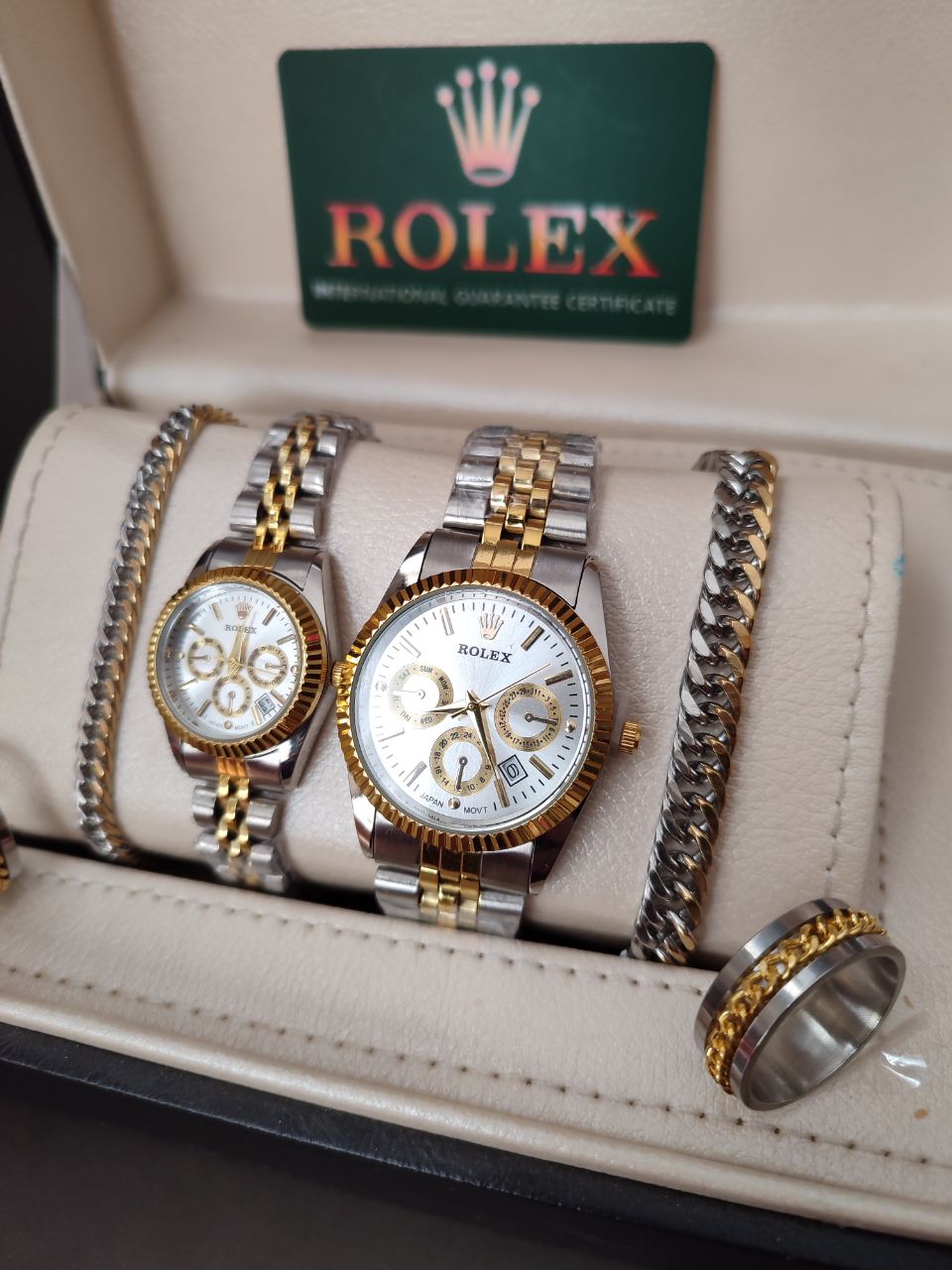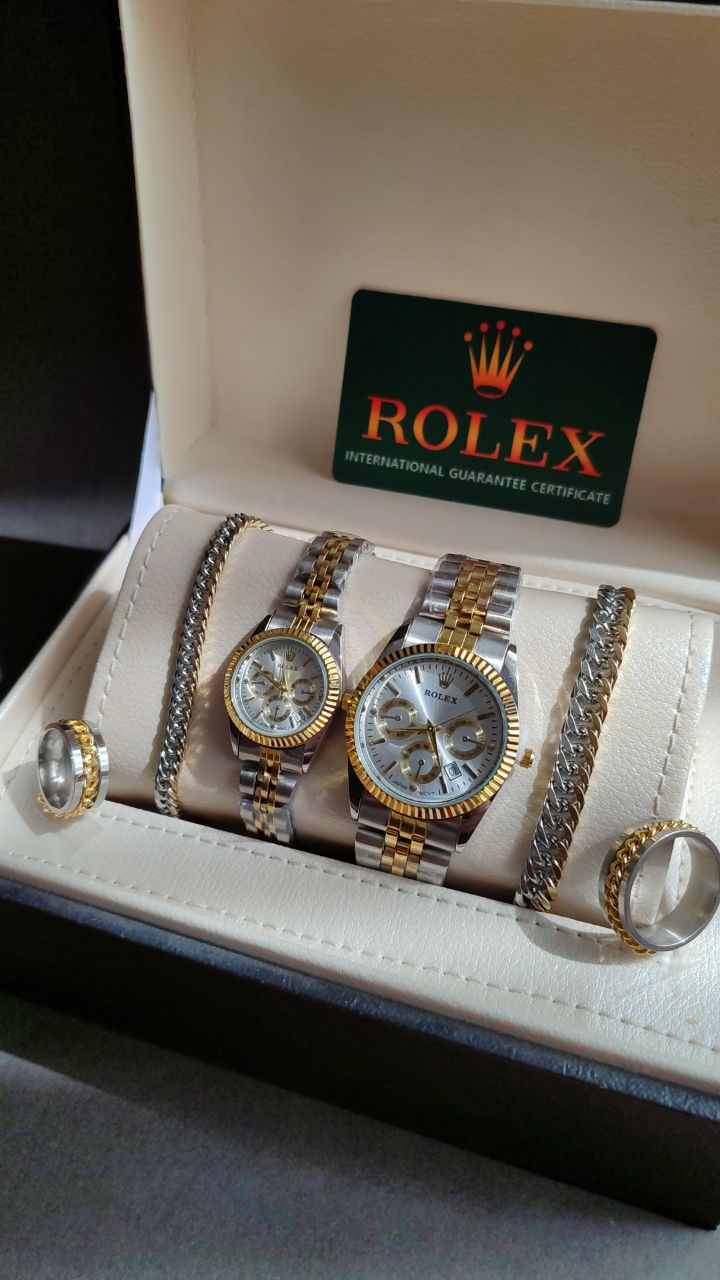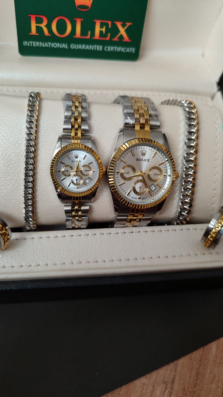 ست ساعت برند رولکس زنانه مردانه گارانتی موتور باطری یدک ارسال رایگان کیفیت درحد جعبه کادو بابالشتک