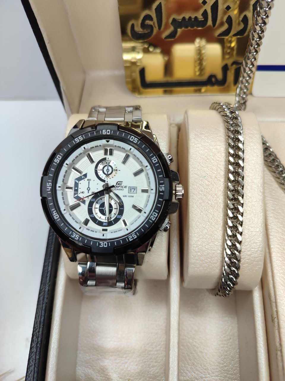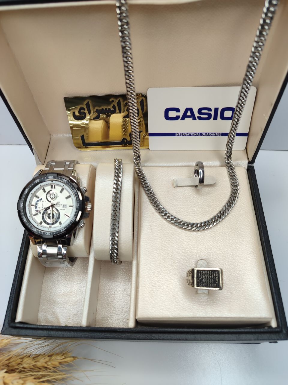 ست ساعت مردانه برند کاسیو ادی فایس دستبند انگشتر گردنبند ارسال رایگان گارانتی موتور